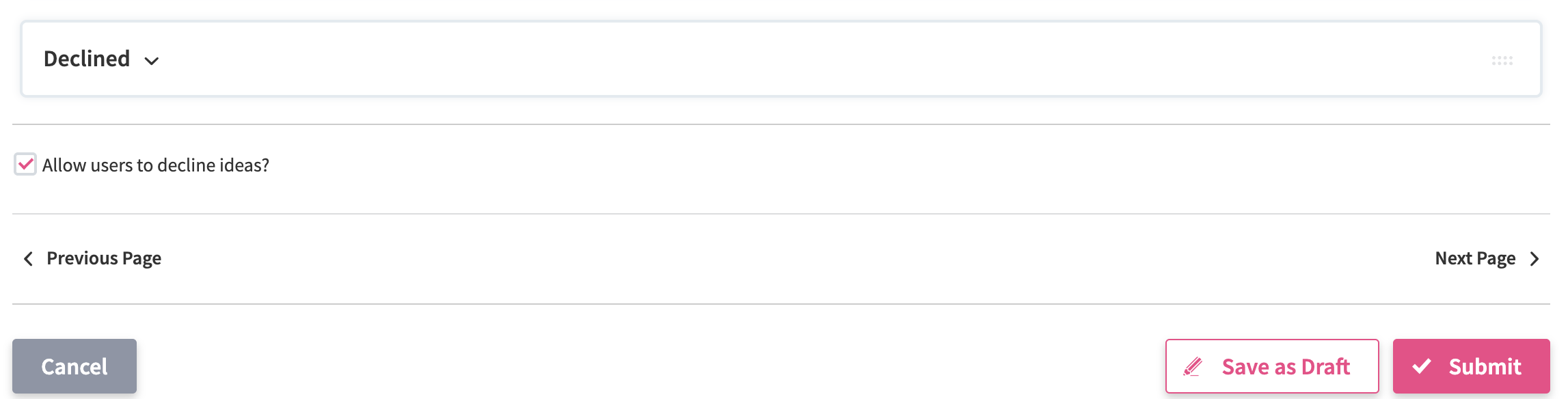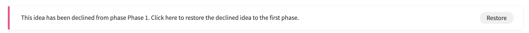 Within always-on campaigns only (since in time-bound campaigns there can only be one active phase), there is the possibility to decline ideas that, e.g. did not meet particular rating criteria, or have not progressed through the idea funnel.