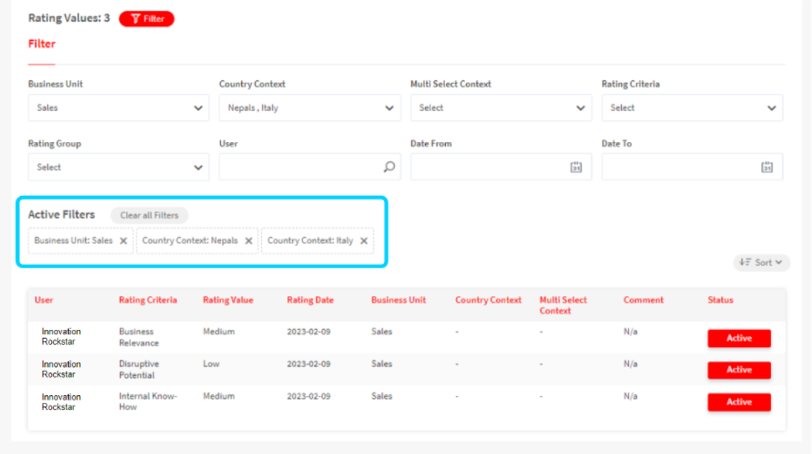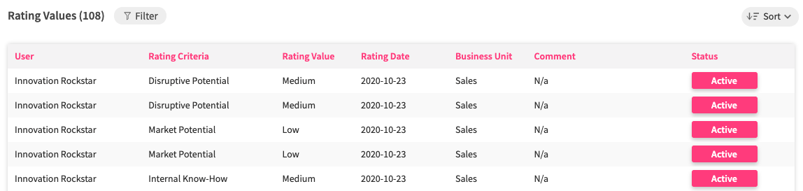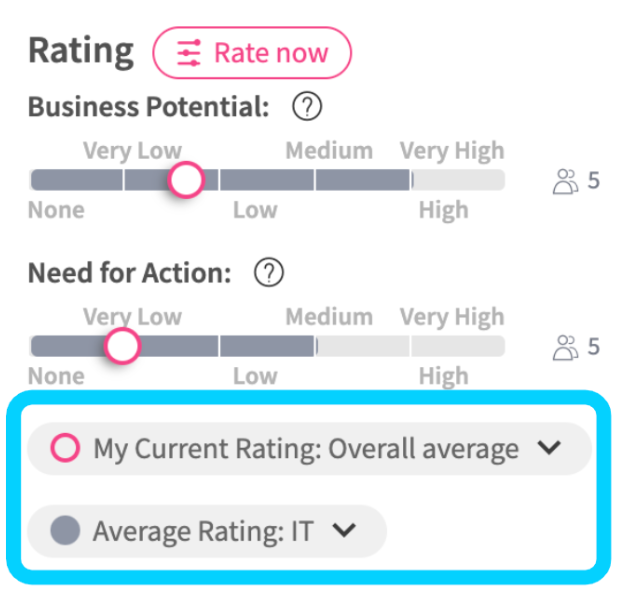 You can now see all the ratings from all evaluators, and you now can compare your rating with others or the ratings added by different groups defined by your Application Owner.