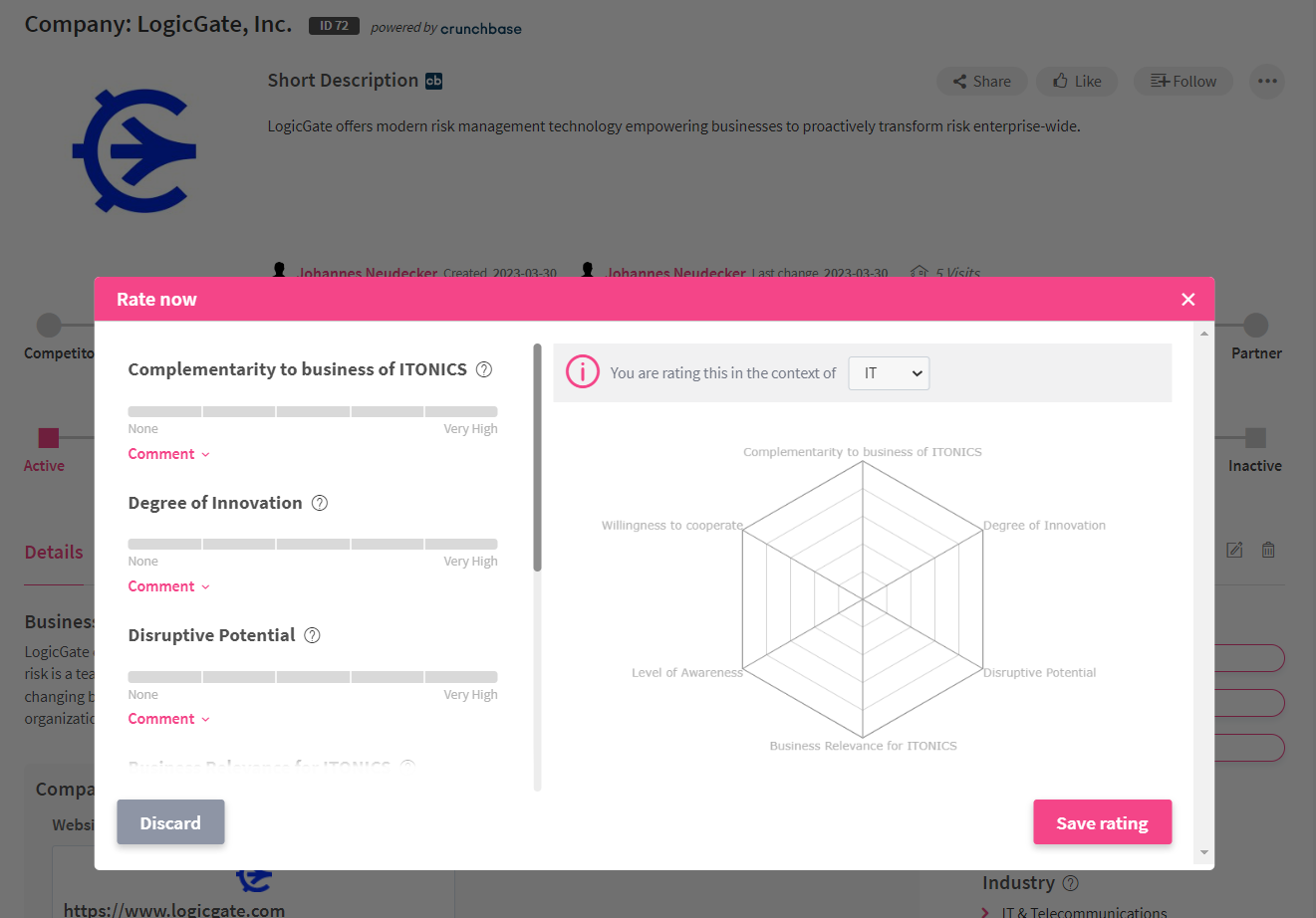 Ratings are now added by a higher number of users. To compare such ratings, and identify commonalities or deviations, users with the respective permissions can use the Rating Analysis Tab.