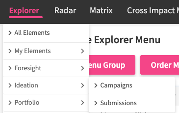 Overall, if menu groups are configured for the Explorer, the order will be defined the following: