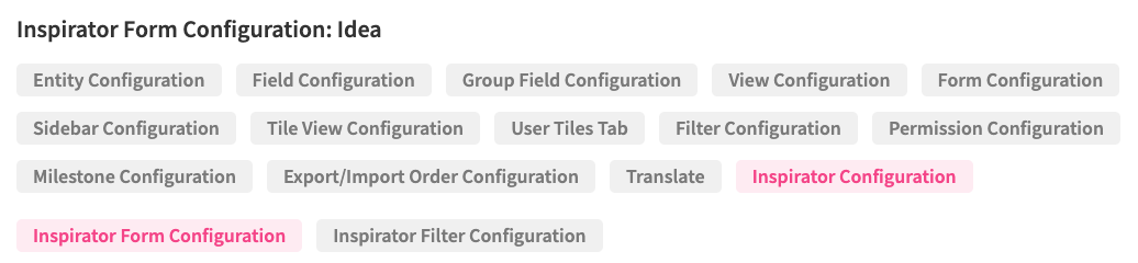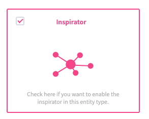 Activate the module on the entity by selecting the checkbox and saving the configuration. Once enabled, a new Inspirator Configuration tab becomes available in the Entity Configuration, while clicking on the Inspirator Configuration tab will open two sub tabs.