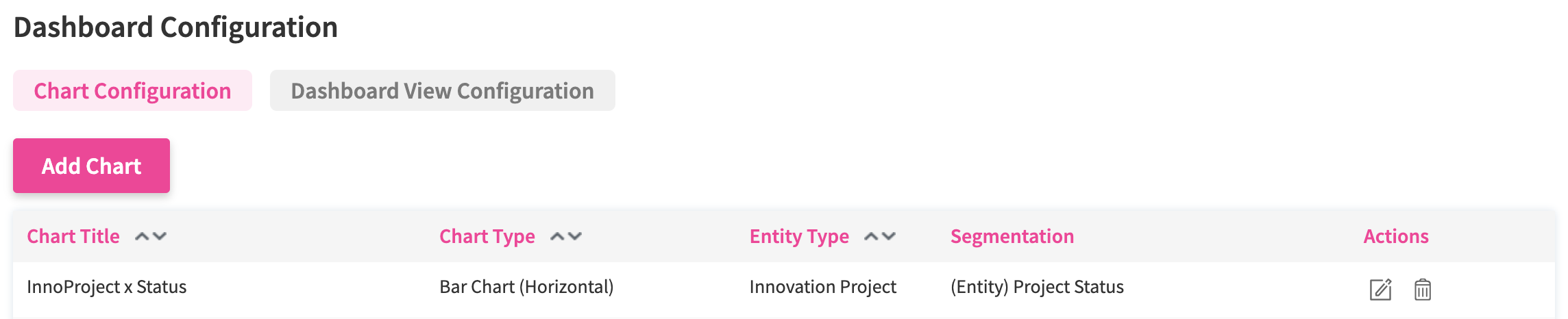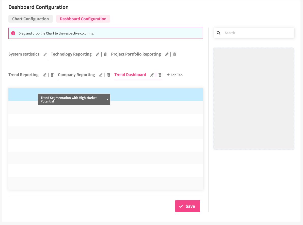 - The Dashboard View Configuration lets you add and organize charts to your custom dashboards.