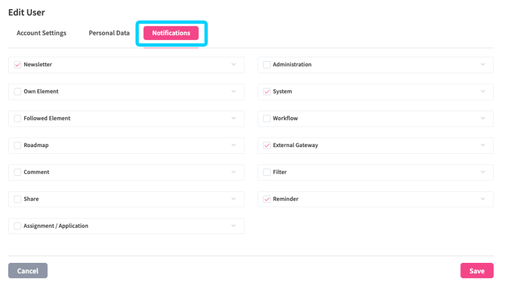 In the Notifications tab (3), you can either toggle all notifications or enable/disable single notifications. For more information about notifications, visit the articles about the notification center and the notification settings.