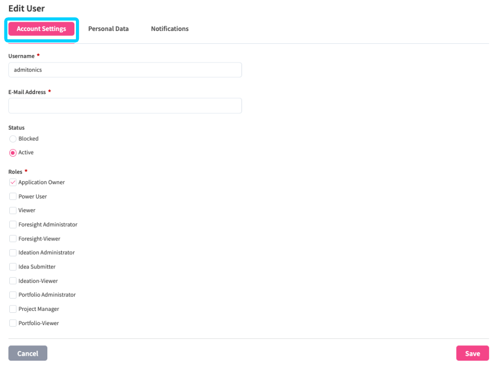 As an Application Owner, you have permission to edit user profile information. This is particularly powerful to change the role assignment of specific users.