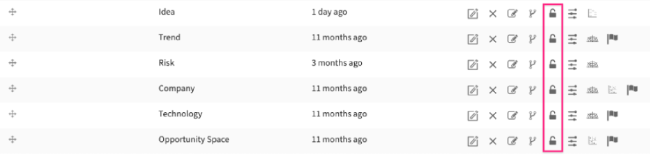 Please also note that besides the entity-specific permission scheme, the ITONICS system also offers options for local permissions, e.g., permissions that can be granted just to specific users or content elements.
