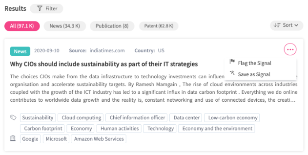 While the results of the Signals feed are usually relevant for technological topics, accuracy and relevance can be an issue for societal trends. Here are tips on how to improve the quality of the feed: