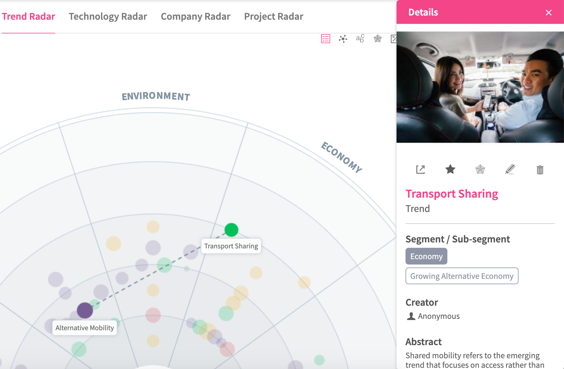 How can I display the most important data of an element from the Radar? Click on an element to open the preview. Here you can see the title, abstract, ratings, and linked core functionalities.