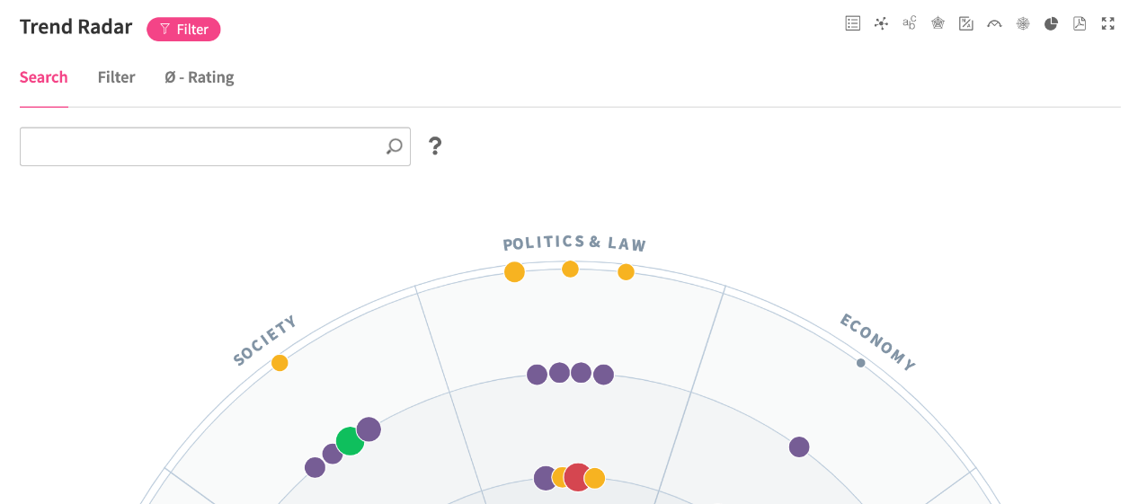 Use the Search bar, Filters or Segments to find any element on the Radar.