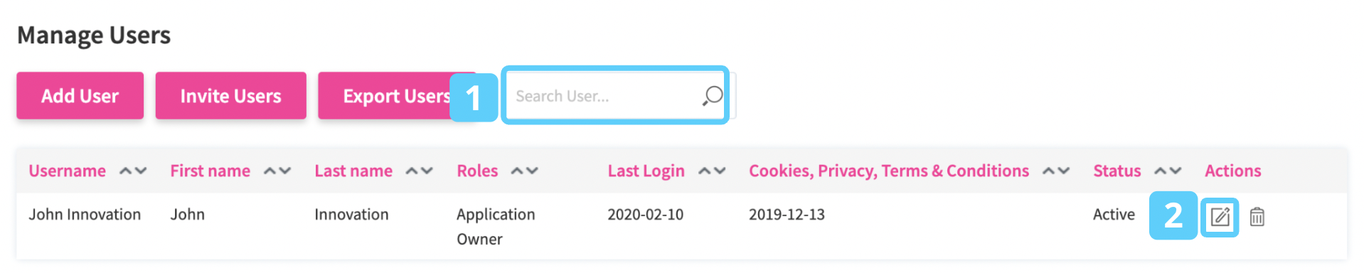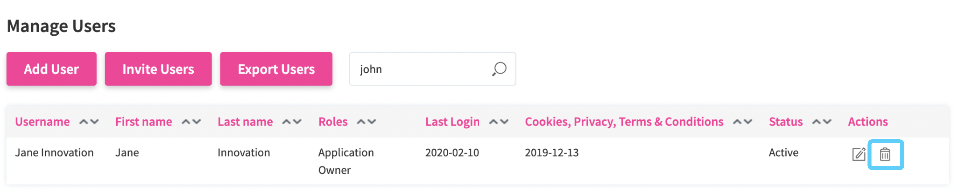 To delete a user on your ITONICS platform, navigate to the Settings Wheel > User Management > All Users.