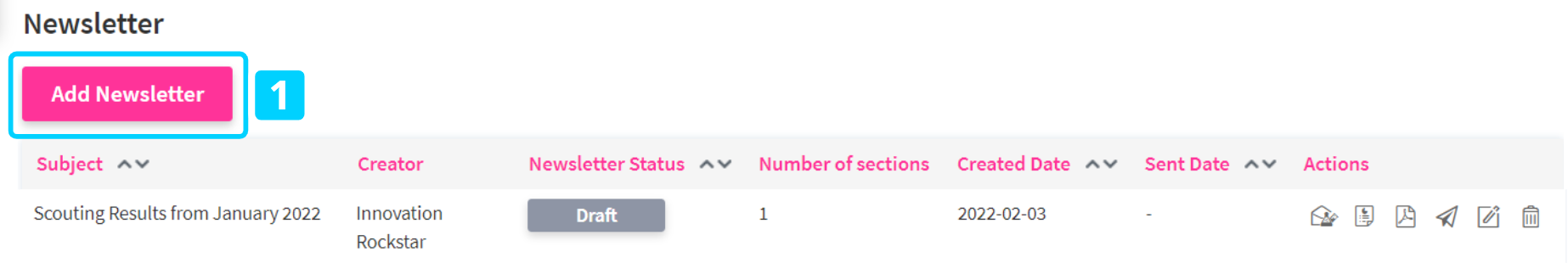 Click on the Add Newsletter button on the Newsletter form page to start filling in the fields. (1)