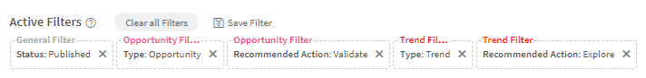 We have extended the capabilities of filters on the Explorer, Roadmap, Network Graph, and Tag Cloud. It is now possible to apply general filters and combine them with entity type specific filters across multiple entities. This enables the user to filter on a more detailed level across different entity types.
