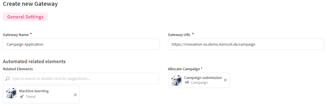 We have introduced the External Gateway feature for campaigns. You can now configure External Gateways by specifically selecting a particular campaign to be open for external submissions. This enables you to, for example, enrich your idea campaign by opening the ideation process to external submissions to receive new ideas from outside the company for a running campaign.