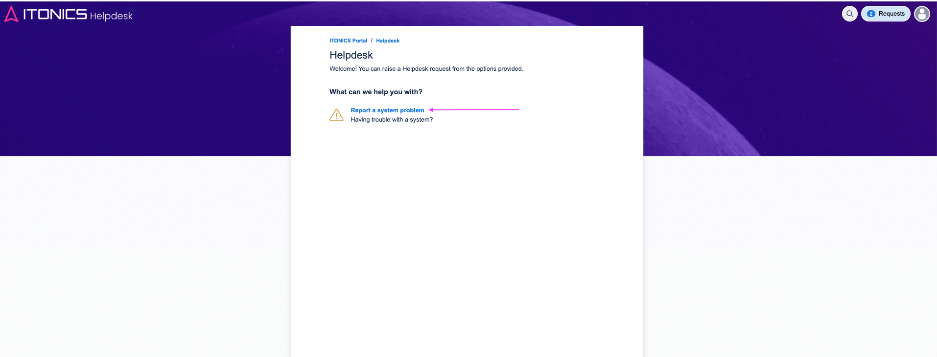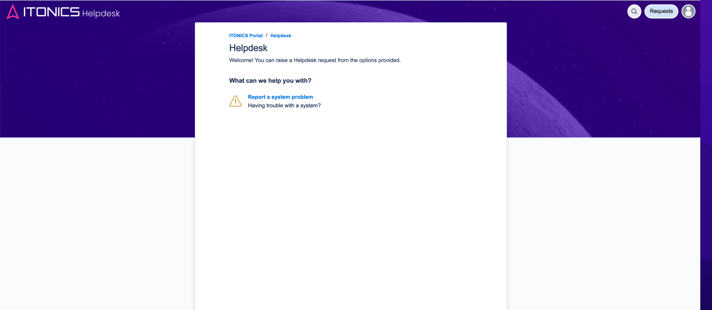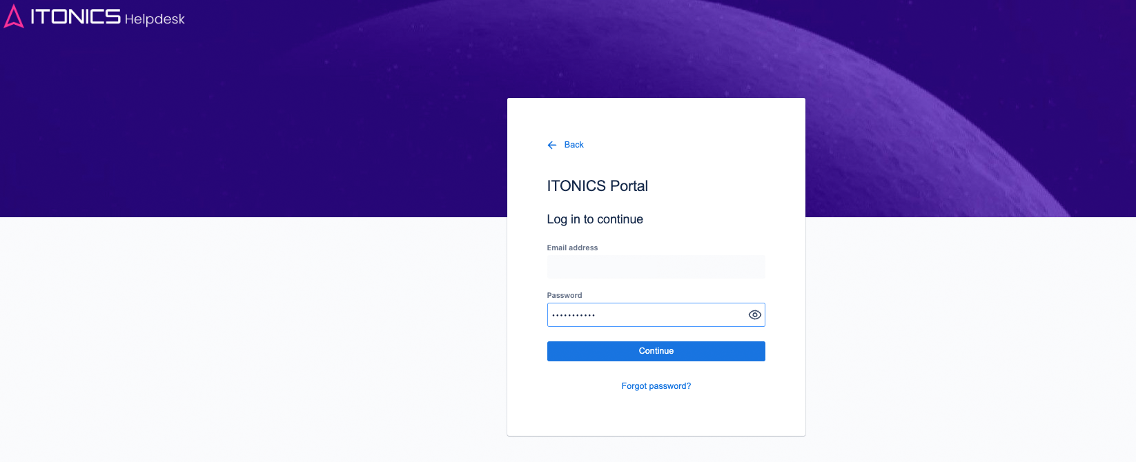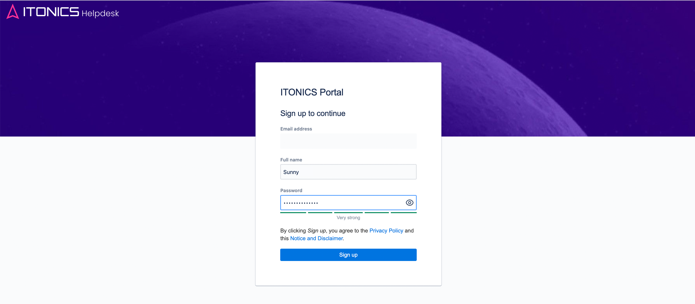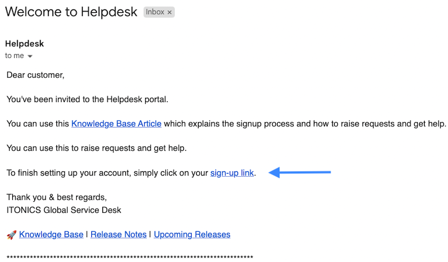 Before you can use the Helpdesk Portal you need to sign up through the link from the “Welcome to HelpDesk” email that will be sent to you after submitting a request to ITONICS.