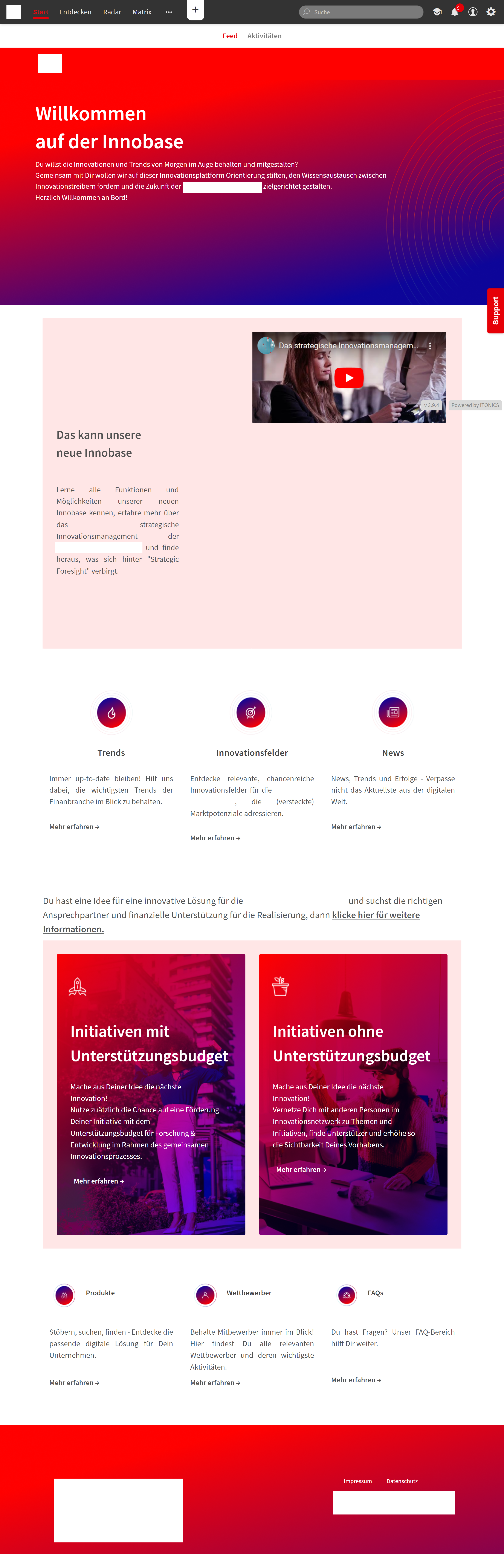 Driven by the vision of empowering internal entrepreneurs, this system allows users to discover and evaluate trends and technologies and develop new ideas and disruptive business models. It also includes the option to discover hot topics, campaigns, and running projects. For all activities, the landing page provides the right call-to-action and so making it easy for platform entrants to get involved.
