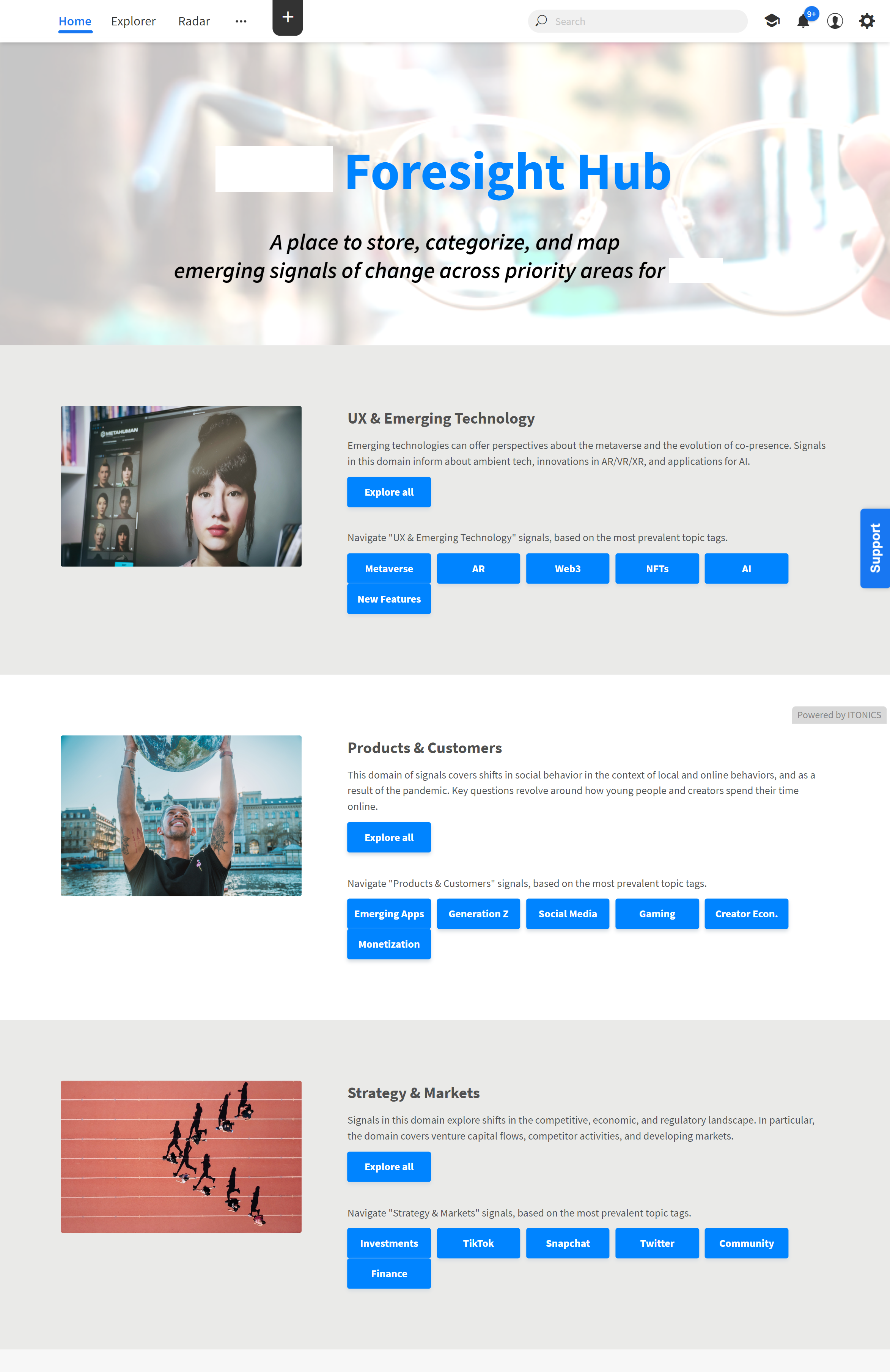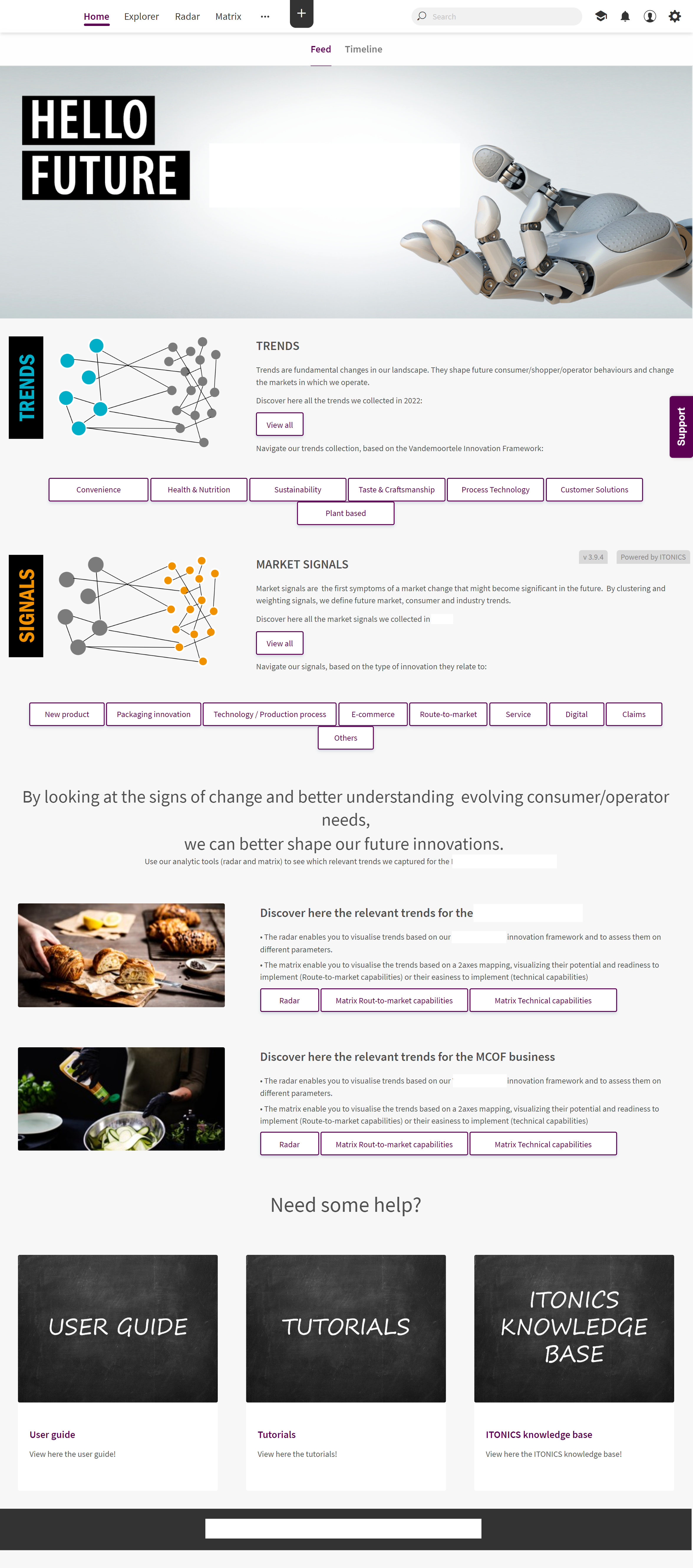 This example focuses on providing a better understanding of changing consumer needs immediately. From the landing page, users can explore trends and other market signals quickly. By providing appealing information immediately, you motivate users to get involved.