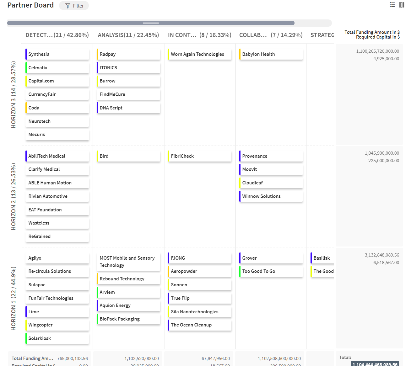 Across your organization, many departments will work together with external parties or are approached by different external partners, e.g., start-ups, universities, and even freelancers. To make transparent who was in contact with whom, to avoid double work, and foster synergies, you can outline your complete partner portfolio in ITONICS and manage it within your application.