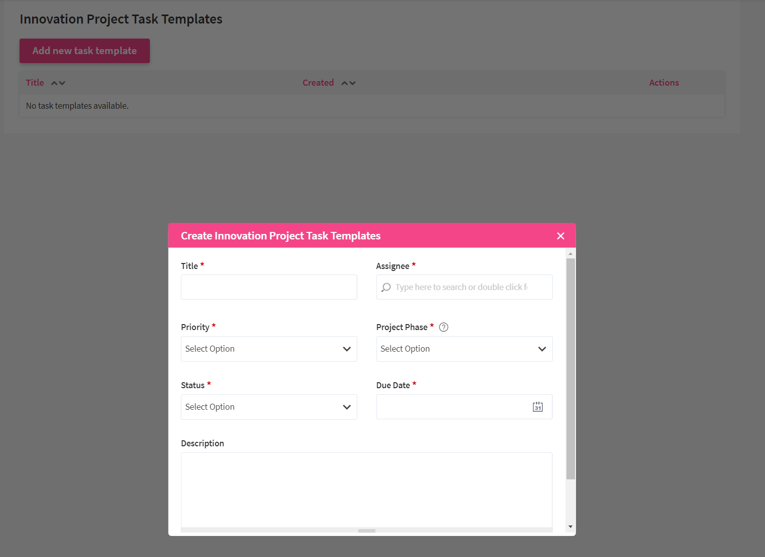 To start with, you should get clarity on your project process and what information you want to capture in your application. Do you also want to collect project proposals? Or, are you (only) capturing the information on running projects? Getting clarity on the setup will help you to create the project template that is just right for you.