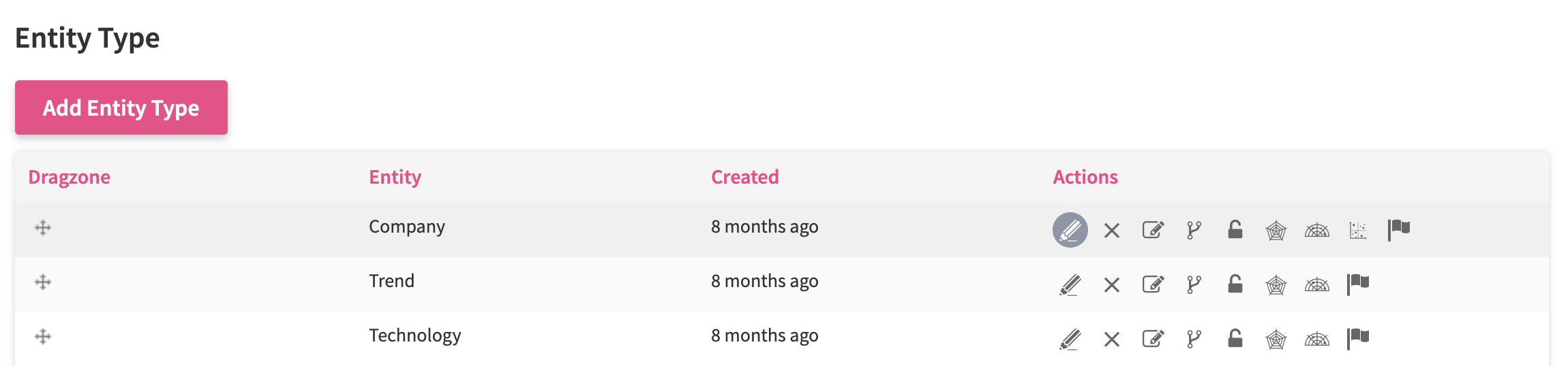 In order to set up your first Matrix for a particular entity , go to the Settings Wheel > Entity Configuration > Entity Configuration. Select the type of entity you want to create your matrix for, and click the Pen icon to go to the edit section.