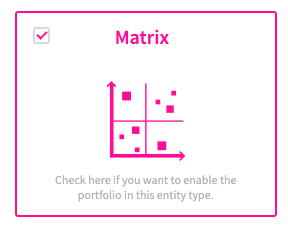While your users will later have the option to customize the matrix to their needs, you need to provide them with a default configuration. A matrix can be built on top of each entity. This also means that the content displayed on the matrix will be always of the same entity type.