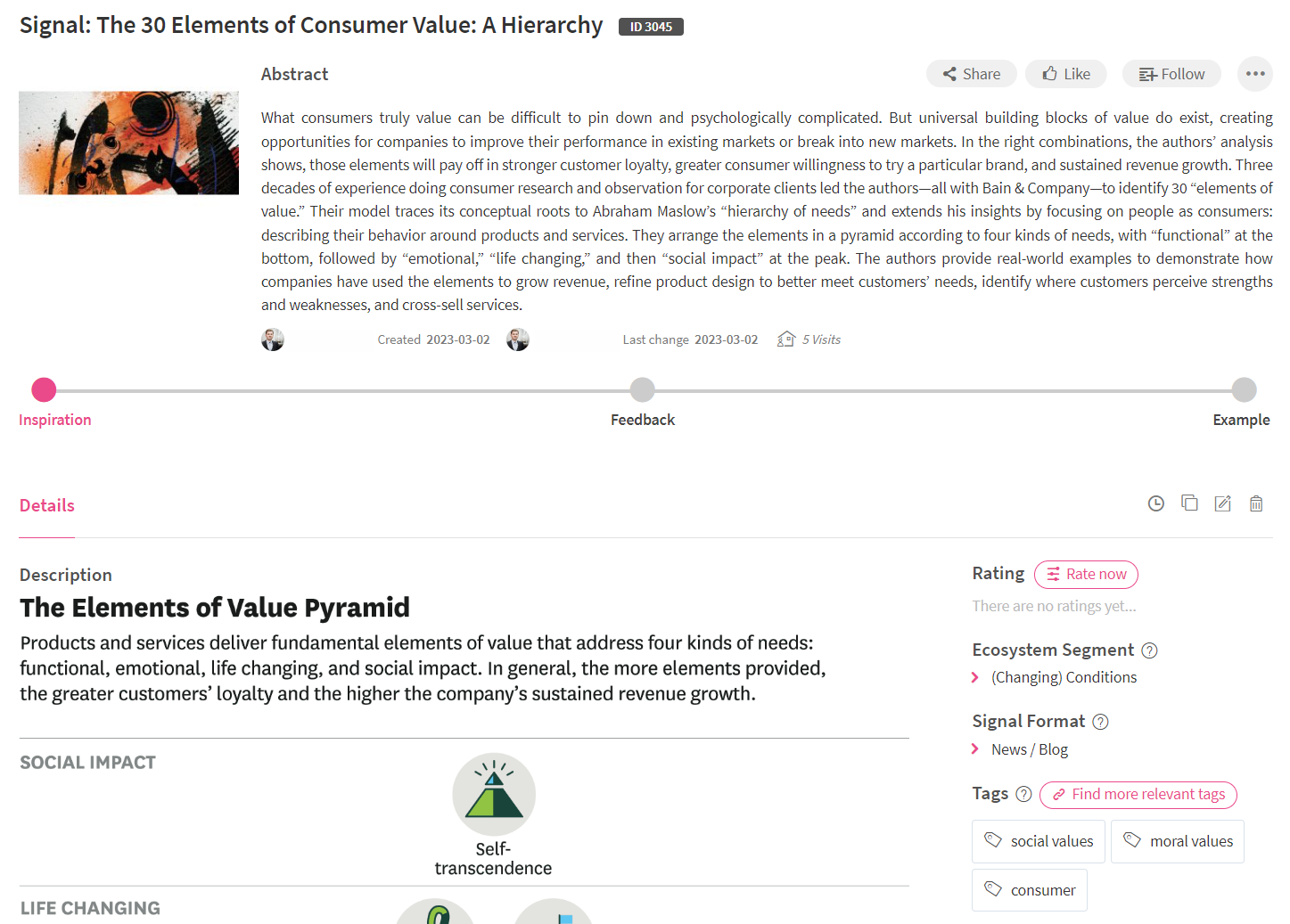 After the collection, it is required to muddle through all the incoming signals and unravel the insights that emerge across the variety of signals. With the ITONICS Tag Cloud, you have the right tool at hand to identify such patterns and identify new drivers/trends which you can act upon as a first-mover.