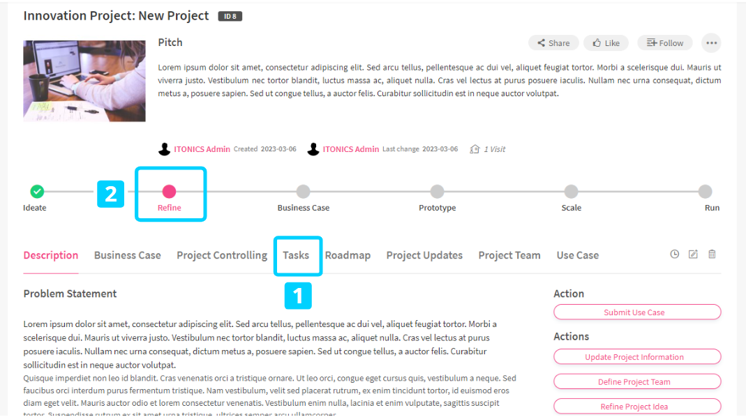 Whenever an idea or project (or anything else) enters a given workflow step, the system checks for existing task templates that are relevant to the entered step. If there are relevant task templates found, the tasks will be created automatically for this idea or project. Those created tasks can then also serve to control the workflow by defining certain workflow dependencies.