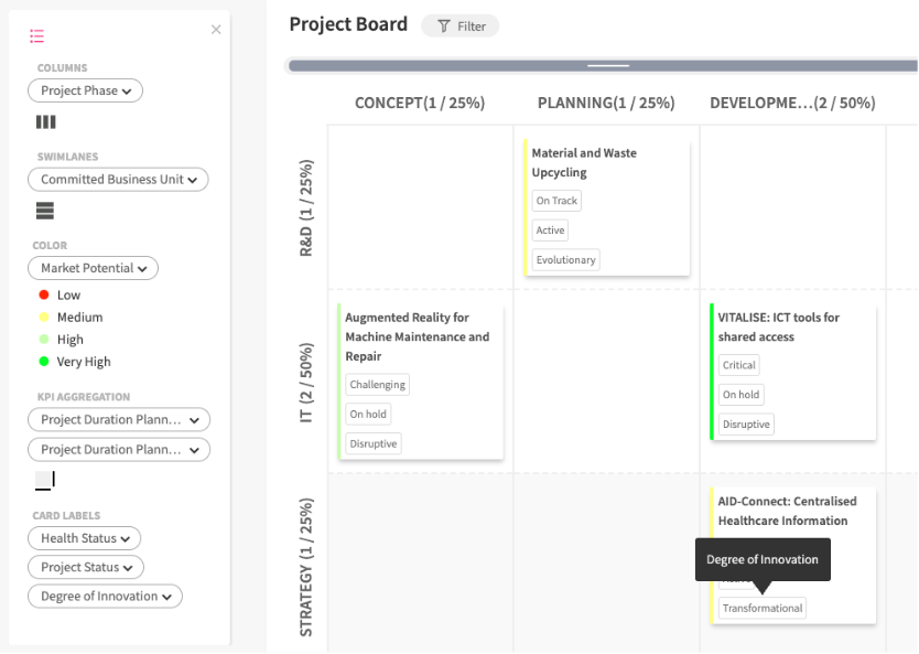 - NUC-9941 - Introduced a new functionality for the Board visualization. Increase the information for your stakeholders provided within the Board visualization by adding configurable labels to the element cards.