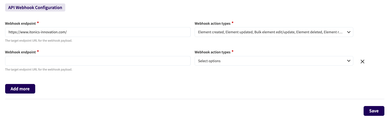 NUC-17189 - Enabled a multi-select functionality for API webhooks , allowing you to configure multiple endpoints to receive the payload for the same action trigger for increased integration flexibility.