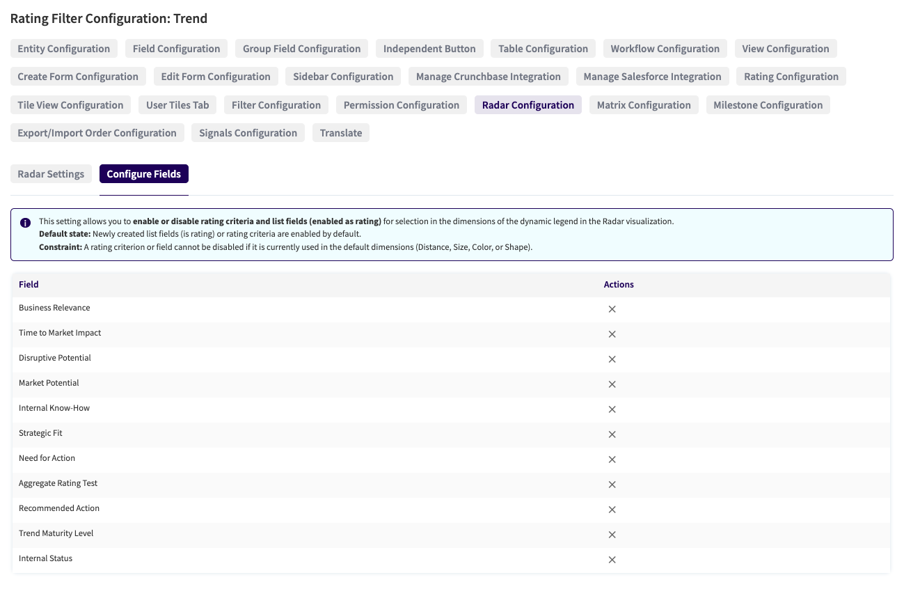 NUC-14792 - Introduced a configuration option that allows you to define which rating and list field options are available for selection in the Radar dimensions, ensuring that users only see essential data for selection.