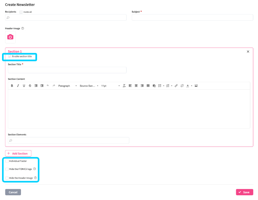 NUC-17204 - Implemented minor UI/UX improvements for the newsletter , allowing you to optionally remove/hide unnecessary information/sections titles to utilize space more efficiently and customize your view.
