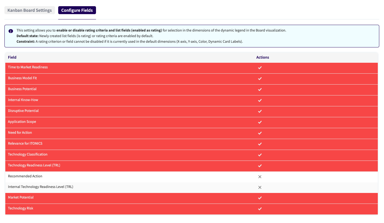 NUC-14795 - We introduced a configuration option allowing you to control which rating and list field options appear in the Kanban board dimensions, thereby limiting user selection to relevant data.