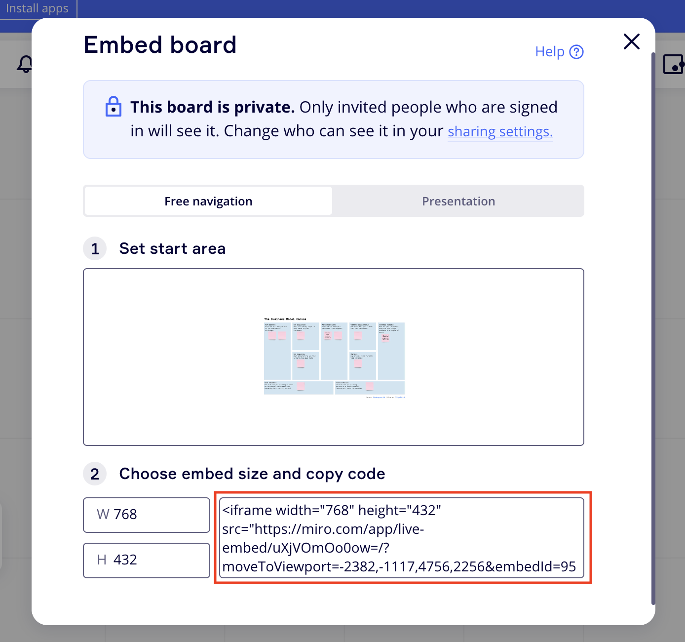 An example: Embedding a Miro Board