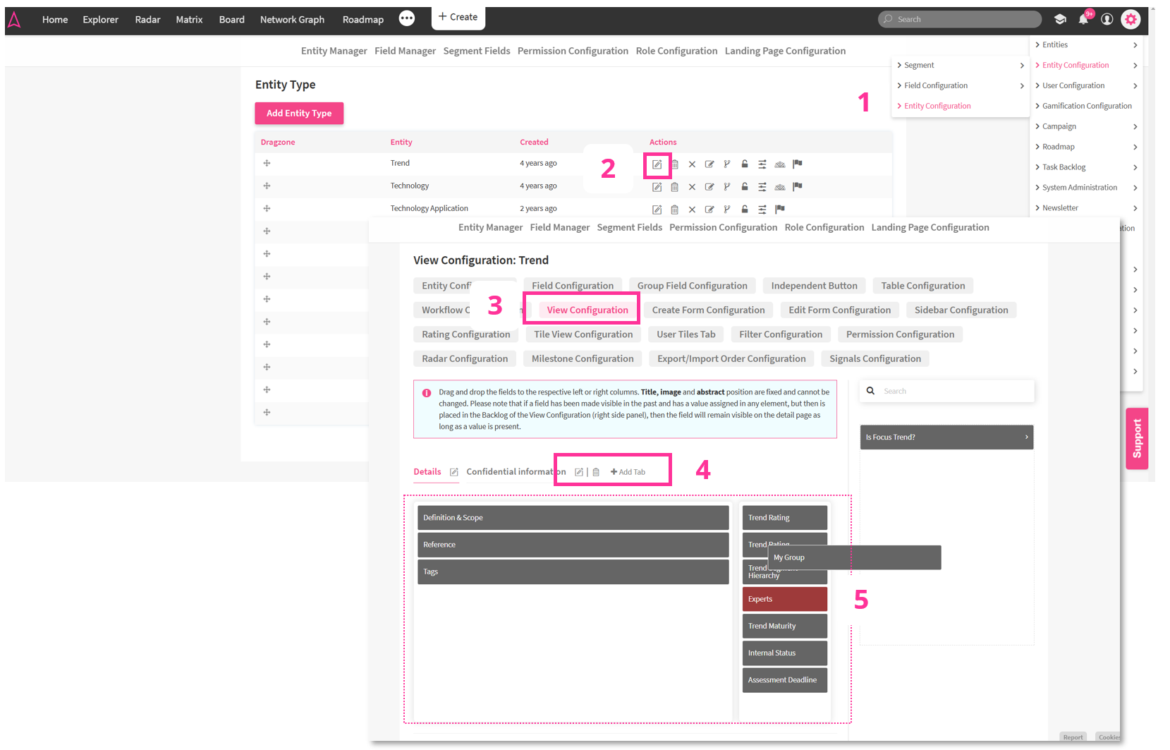 Please note: Both features need to be activated by ITONICS and are entity-specific, i.e. they must be activated for each individual entity. Please contact your Customer Success Manager for further assistance.