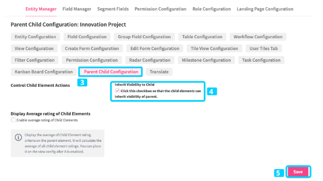 To use this feature the Visibility tab has to be activated on the child entity as well by your Customer Success Manager.