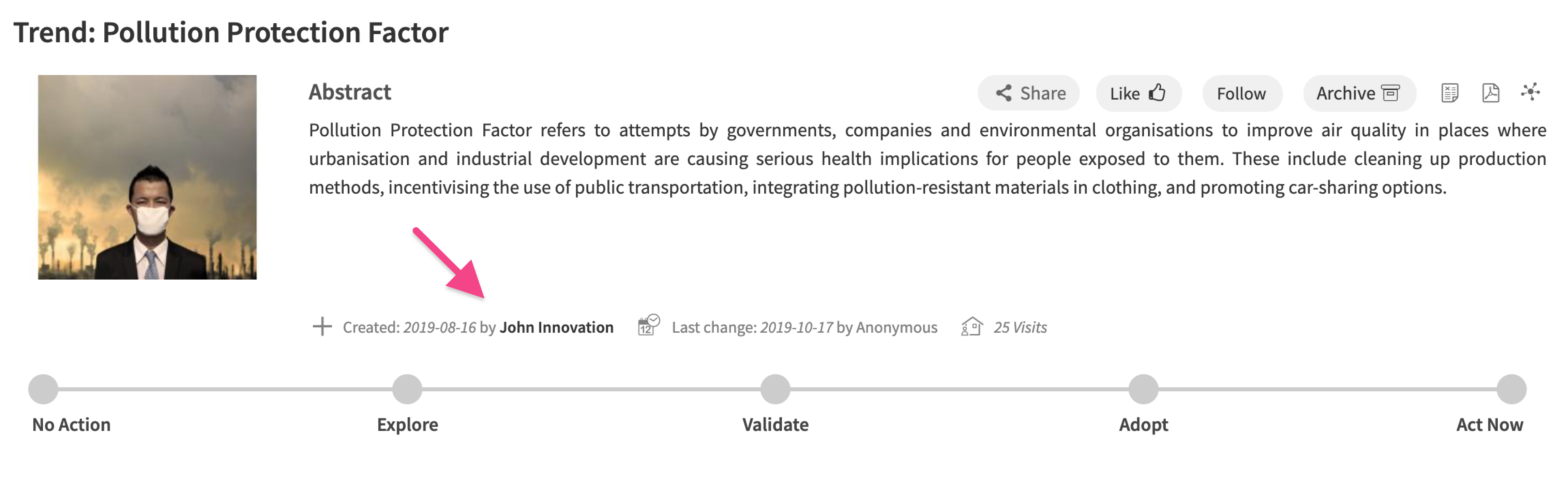 When you open an element, you can find details about the person who created it and made the last changes below the abstract. Click the user name to be forwarded to his/her user profile, where you can find all the specific user's relevant contact details.