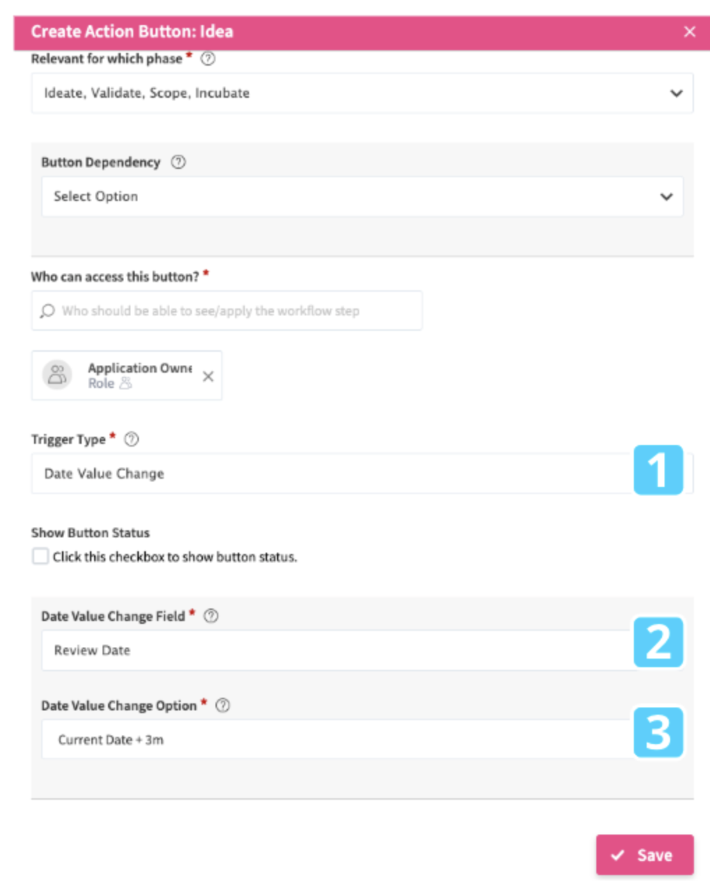 - In the Select the Date Value Change Field, select the Date Picker field which you want to change. In the screenshot, the Review Date field is selected.