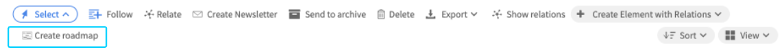 If the element selection is valid, the Create roadmap action option will become available in the action bar.