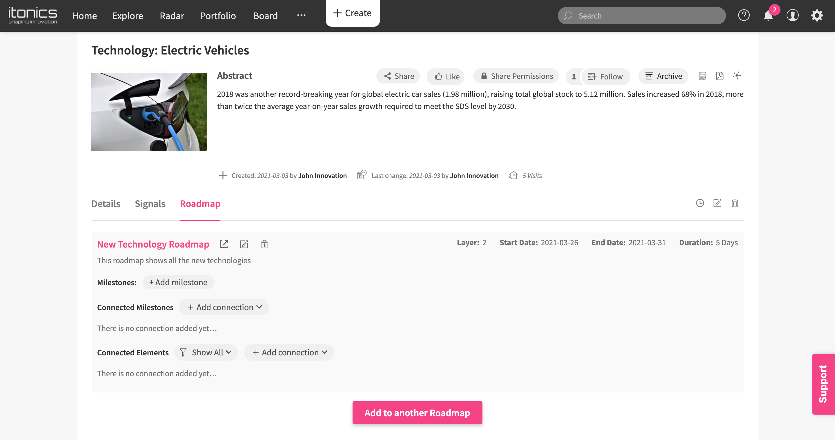 Working with the ITONICS Roadmap